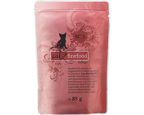Feinkost für Katzen zur artgerechten Ernährung unserer Samtpfoten. Catz finefood No. 3 enthält viel delikates Geflügel und gesunde Zutaten wie Preiselbeeren und Löwenzahn. Ohne Konservierungsstoffe, ohne Geschmacksverstärker und ohne Farbstoffe. Gentechnikfrei. Mmmmiau!