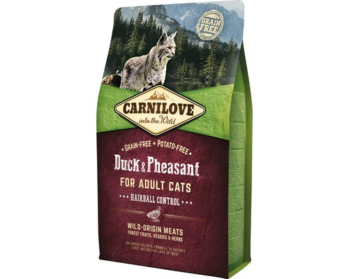 Carnilove Ente & Fasan - Getreidefreie und kartoffelfreie Formel für ausgewachsene Katzen. Angereichert mit Rübenfaserstoff zur leichteren Verdauung von Haarballen