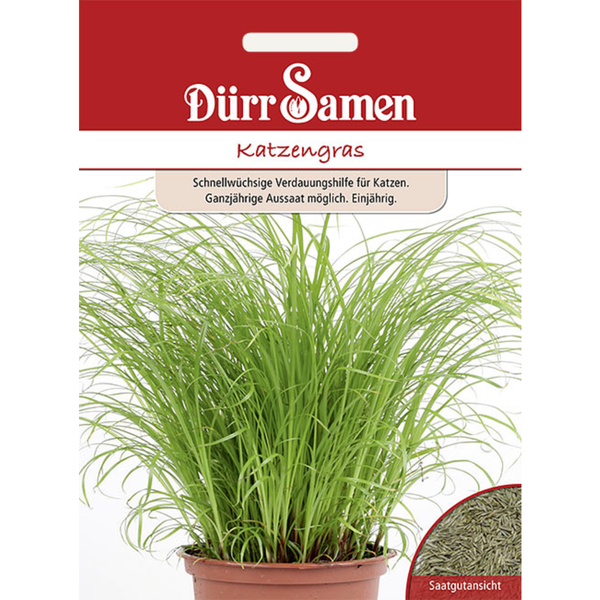 Info: Katzengras ist eine schnellwüchsige Verdauungshilfe für Katzen. Ganzjährige Aussaat möglich. Einjährig.