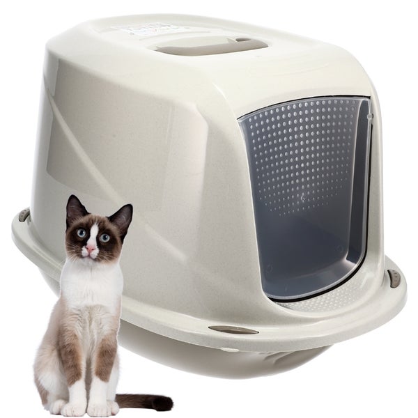 Katzenklo mit Deckel Aktivkohlefilter große XXL Katzentoilette für große Katzen WC Hauben Toilette Klo Indoor Outdoor grau modern