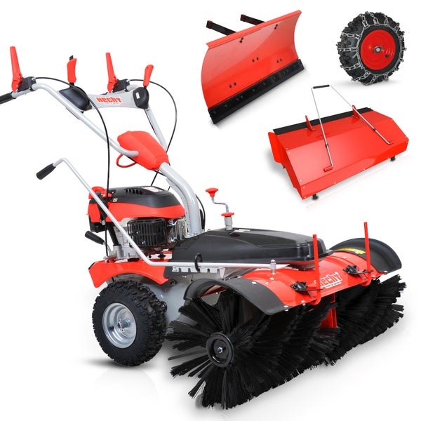 Kehrmaschine Benzin HECHT 8101 / mit E-Start / inkl. Schneeschild, Auffangbox, Schneeketten / Radantrieb / Power für Hof & Winterdienst