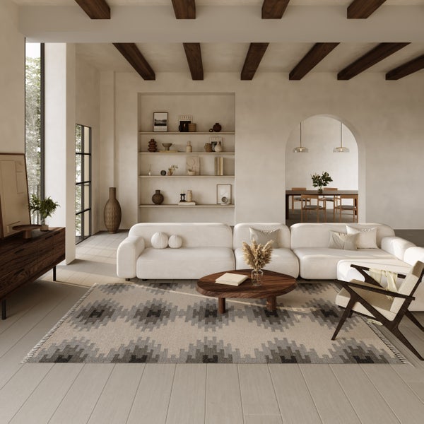Klassisches Teppichdesign in einem modernen Gewand. Dieser zeitgenössische Kelim überzeugt in jeder Hinsicht: Ästhetik, Verarbeitungsqualität und das Verhältnis von Preis zu Leistung. Handgewebt aus purer Wolle, ist dieser Designer-Teppich ein dauerhafter Gefährte, der dir langanhaltende Freude bereiten wird! Dieser attraktive Kelim Teppich überzeugt nicht nur optisch. Seine unkomplizierte Pflege und das GoodWeave-Zertifikat sichern die Zufriedenheit der Kunden. Seine exzellente Verarbeitung sorgt für ein Gefühl von Luxus bei jeder Berührung und unterstützt nachhaltige Lebensweisen. Der Teppich bildet eine ideale Kombination aus handwerklichem Geschick, moderner Ästhetik und einem Einsatz für den Umweltschutz – ein klares Zeichen für Raffinesse und hochwertiges Design in der Inneneinrichtung.