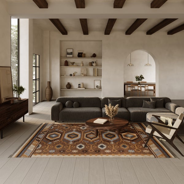 Kelim Teppich Braun aus Wolle Valere Green Looop 300x400 cm