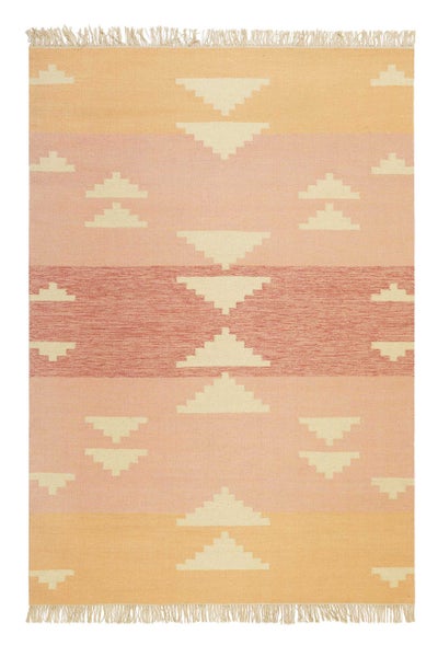 Kelim Teppich Rosa meliert aus Wolle Soleil Green Looop 80x300 cm