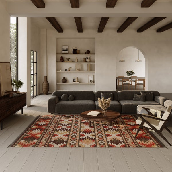 Kelim Teppich Rostbraun aus Wolle Balou Green Looop 140x200 cm