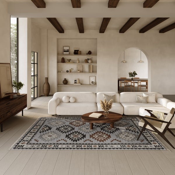 Althergebrachte Handwerkskunst verbindet sich mit zeitgenössischem Wohnstil: Der in Handarbeit hochwertig gefertigte Teppich „Blancard“ von Green Looop zeichnet sich als außergewöhnliches Stück aus. Sein auffälliges, geometrisches Design fügt sich harmonisch in diverse Einrichtungen ein. Mit seinen präzisen Linien und seinem markanten Stil passt Blancard ideal in jeden Raum. Gefertigt aus feinster Schurwolle, ist Blancard mit dem GoodWeave-Siegel ausgezeichnet, welches faire Herstellungspraktiken garantiert. Die herausragende Beschaffenheit garantiert ein Gefühl von Luxus bei jedem Schritt und unterstützt die Förderung eines ökologisch verantwortungsvollen Lebensstils. Dieser Teppich repräsentiert eine harmonische Verbindung von meisterhafter Handwerkskunst, moderner Gestaltung und einem Engagement für die Umwelt – ein klares Zeichen von Distinktion und Stil in jeder Raumgestaltung. Mit seinen präzisen Linien und seinem markanten Stil passt Blancard ideal in jeden Raum. Gefertigt aus feinster Schurwolle, ist Blancard mit dem GoodWeave-Siegel ausgezeichnet, welches faire Herstellungspraktiken garantiert. Die herausragende Beschaffenheit garantiert ein Gefühl von Luxus bei jedem Schritt und unterstützt die Förderung eines ökologisch verantwortungsvollen Lebensstils. Dieser Teppich repräsentiert eine harmonische Verbindung von meisterhafter Handwerkskunst, moderner Gestaltung und einem Engagement für Umweltschutz – ein klares Zeichen von Distinktion und Stil in jeder Raumgestaltung.