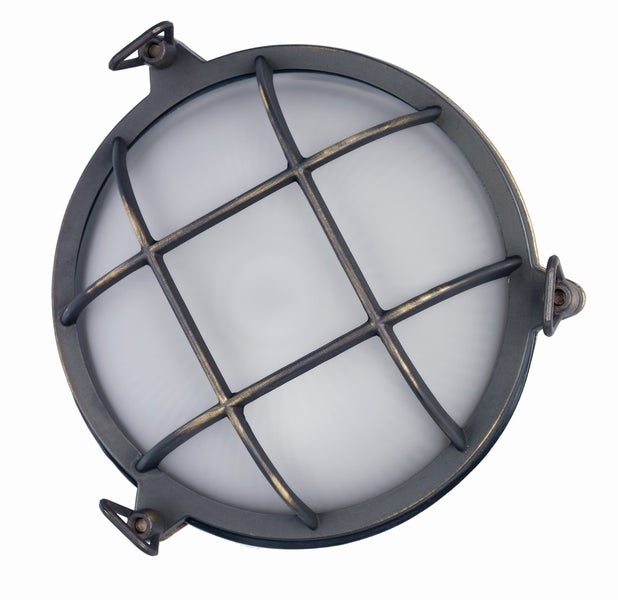 Kellerleuchte Glas Messing E27 IP44 Ø 25 cm rund in Bronze dunkel Maritim Wandlampe außen Außenleuchte Wand