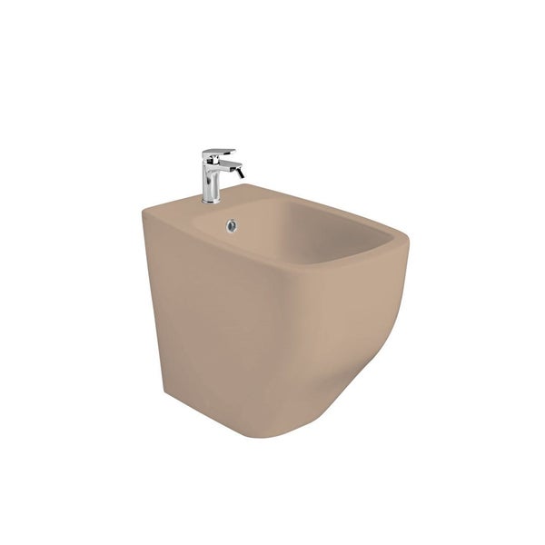 Das bodenstehende Bidet Mozart von Kiamami Valentina ist aus hochwertiger Keramik gefertigt und in einem warmen Sandmatt-Finish gehalten. Das Bidet ist mit einem Hahnloch und einem Überlauf ausgestattet. Durch den wandbündigen Einbau sind die Abläufe nicht sichtbar und es entstehen keine Lücken zwischen Wand und Sanitärarmatur, in denen sich Schmutz und Bakterien ansammeln können. Der Wasserhahn für das Bidet ist NICHT enthalten.