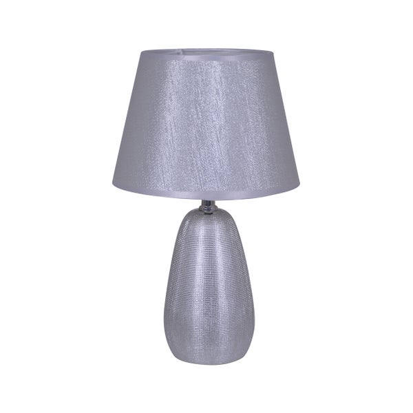 Keramik Tischleuchte h: 37cm SIMLY CERAMICS, Tischlampe aus Keramik, silber, mit E14-Fassung, für Esszimmer, Wohnzimmer, Diele oder Büro, 31 cm hoch