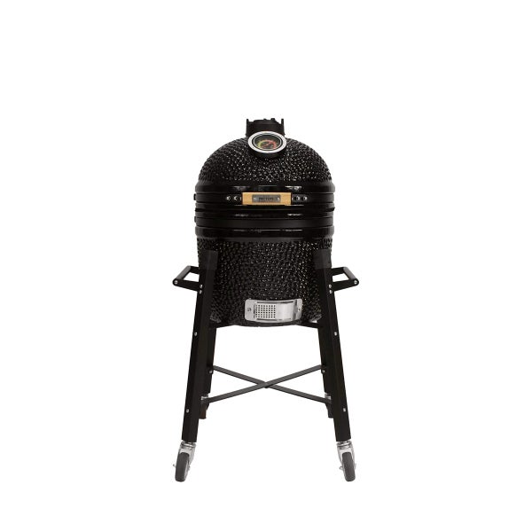Keramikgrill PATTON Kamado Premium Compact 15 mit Rollwagen - Rost Ø 34 cm - Schwarz