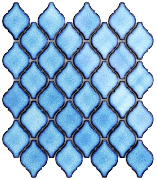 Keramikmosaik auf Netz für Bad oder Küche 28.2 cm x 25.2 cm - blue arabesque
