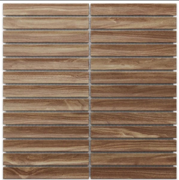 Keramikmosaik auf Netz für Bad oder Küche 29.6cm x 30.0cm - Dark wood piano