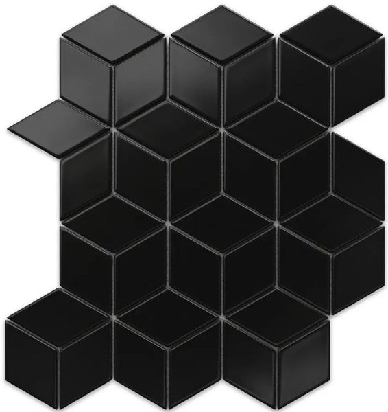 Keramikmosaik auf Netz für Bad oder Küche 30.5cm x 26.5cm - Black Geometric Cubes