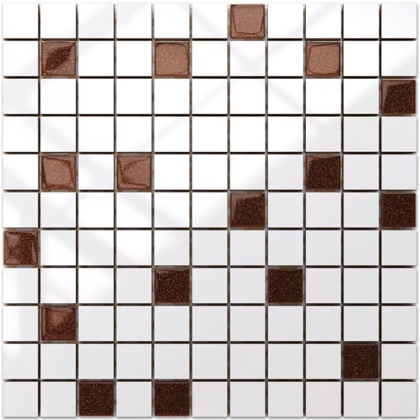 Keramikmosaik auf Netz für Bad oder Küche 30cm x 30cm – White-brown