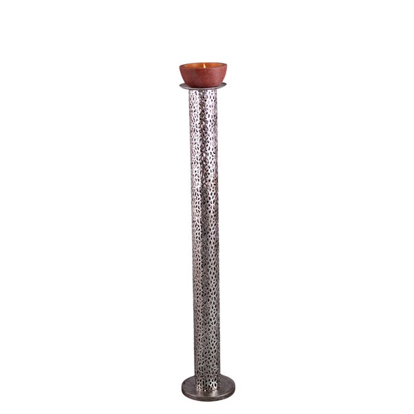 Der edle Bodenständer aus Metall ist in silberfarbener antiker Optik gehalten und hebt die Atmosphäre in jedem Wohnbereich im Handumdrehen auf ein neues Niveau. Durch seine stilvolle antik-silber Optik zaubert er zusammen mit einer schönen Kerze Glanz in Ihre vier Wände. Der Ständer harmoniert sehr gut mit einem edlen Vintage-Einrichtungsstil. Der Kerzenständer hat eine beachtliche Höhe von ca. 100 cm. Somit lässt er sich ideal auf Höhe einer Couch präsentieren. - Breite15 cm