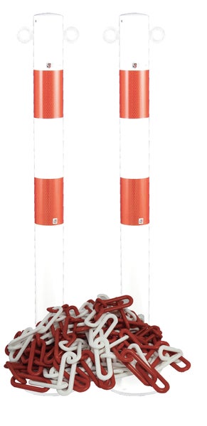 Variante A = 2 Pfosten zum Aufdübeln oder Variante B: mit Kettenösen und 5 m Kette rot/weiß aus Kunststoff