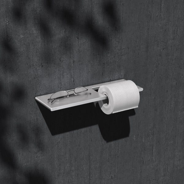 KEUCO Edition 400 Toilettenpapierhalter aus Aluminium, mit Ablage, silber-eloxiert