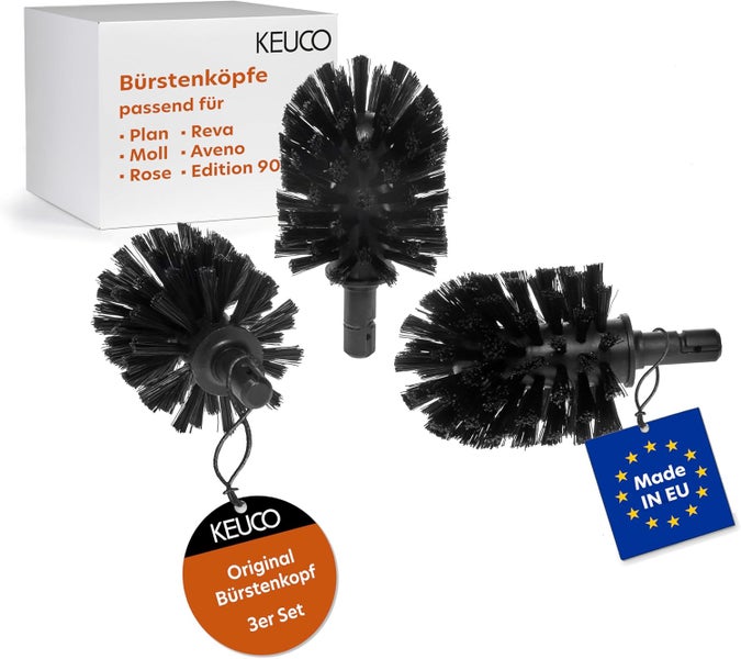 KEUCO Toilettenbürstenkopf, 3 Stück, für Plan, Edition 90, Moll, Reva und Rose, schwarz