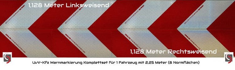 KFZ Warnmarkierung (Sonderrechte für Baustellenfahrzeuge), 2,26 Meter x 141 mm breit- Kompletter Zuschnitt für ein KFZ, nach DIN 30710