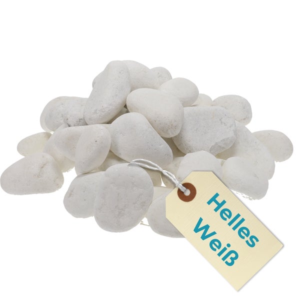 Die Kieselsteine sind weiß mit feiner, natürlicher Maserung. Im feuchten Zustand kommt die Marmorstruktur besonders gut zur Geltung.