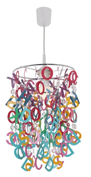Verleihen Sie Ihrem Zuhause mit der LETTERLY Pendelleuchte das gewisse Etwas. Mit Pendelleuchten schaffen Sie eine klare und fokussierte Beleuchtung - optimale Beleuchtung für Esstische, Kücheninseln, Arbeitsbereiche oder jeden Bereich, der zielgerichtetes Licht benötigt. Sie helfen, eine bestimmte Zone hervorzuheben und schaffen eine klare Lichtquelle für Tätigkeiten. Das farbenfrohe Design der Leuchte im Stil Junges Wohnen macht sie zu einem echten Hingucker. Die Leuchte in bunt ist aus Kunststoff gefertigt und ist ein echter Blickfang in jedem Raum. Die Oberfläche des Gestells ist verchromt. Die Pendelleuchte misst 25 cm in der Länge, 25 cm in der Breite/Tiefe und 110 cm in der Höhe. Die Leuchte hat also einen Durchmesser von 25 cm. Die Pendellänge ist 80 cm. Mit dieser Pendelleuchte erhalten Sie eine ästhetische Beleuchtungsmöglichkeit für Ihre Wohnräume. Mit 1 mal E27 ausgerüstet (nach Ihren Wünschen mit passenden Leuchtmitteln zu bestücken), kommt auf attraktive Art und Weise Licht ins Dunkel. Durch die Möglichkeit, das Leuchtmittel selbst zu wechseln, sind Sie nicht nur flexibel, sondern sparen auch bares Geld. Diese Leuchte entspricht der Klasse 2. Für den Netzbetrieb dieses Geräts wird eine Netzspannung von 220-240V ~ 50Hz benötigt. Eine Gesamtleistung von 40 Watt sorgt für ein helles und energieeffizientes Leuchten im Wohnbereich. Verleihen Sie Ihrem Zuhause mit unserer hochwertigen Pendelleuchte das perfekte Lichtambiente und genießen Sie Komfort und Stil in jedem Raum.