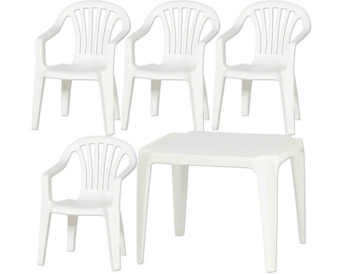 Kindergartenmöbel Progarden Kindermonoblock Set 4 -Sitzer 5 tlg. weiß aus Kunststoff, Stapelbar für platzsparende Lagerung
