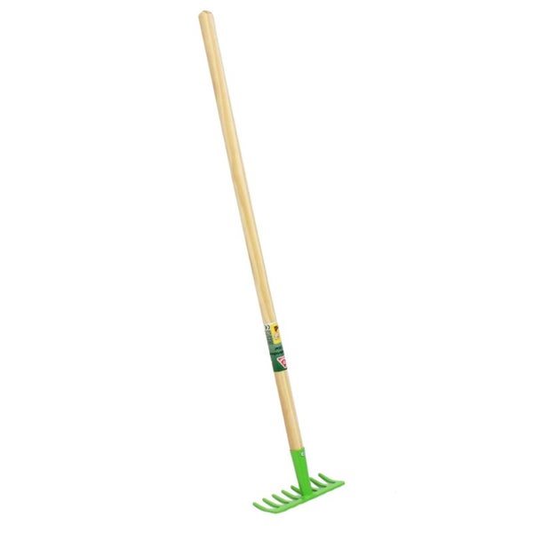 Grüner Kinderrechen mit 8 Zinken und Holz-Stiel