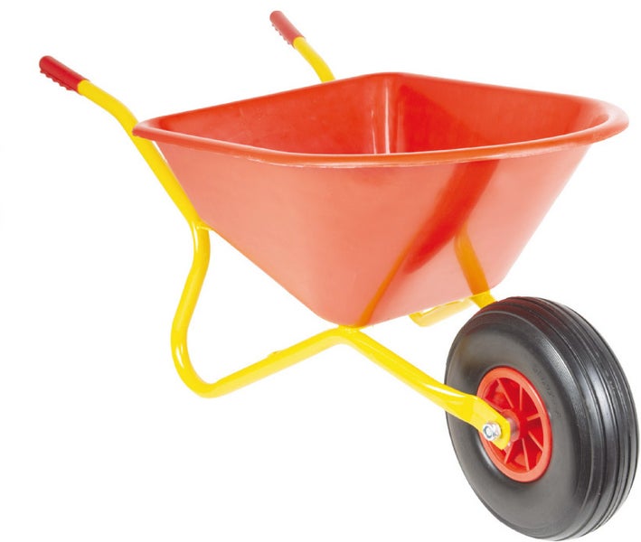 Die Schubkarre wird zerlegt im Karton geliefert – einfacher Aufbau, sofort einsatzbereit. Geeignet für Kinder ab 4 Jahren.