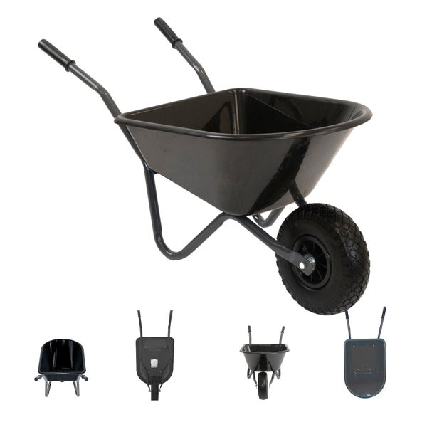 Kinderschubkarre uni schwarz 40 kg 20L Kunststoffwanne Vollgummirad Schiebkarre Gartenkarre