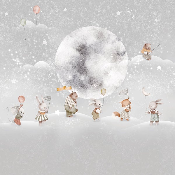 Entdecke die zauberhafte Welt der Kindertapete, die mit liebevoll gestalteten Motiven geprägt ist. Diese kreative Tapete verwandelt das Kinder- oder Babyzimmer in eine Oase der Fantasie und Ruhe. Mit einem inspirierenden Design, das Wolken, Tiere und einen großen Mond umfasst, sorgt sie für eine beruhigende Atmosphäre, die sowohl Kinder als auch Eltern begeistert.