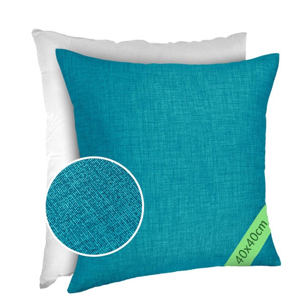 Kissenhülle Leinenoptik 40x40cm mit Füllung Türkis