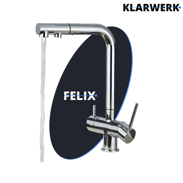 KLARWERK® Felix | ausziehbare 3-Wege Armatur Edelstahl Chrom Glanz | Filter Trinkwasser Wasserhahn Küche | Osmose Mischbatterie L-Auslauf 3 Anschlüsse