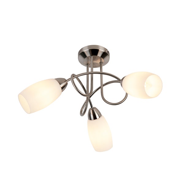 Klassisches Design, höchste Funktionalität und ein echter Stimmungsmacher für Ihr Zuhause oder Ihr Geschäft! Der Stahl verleiht der Leuchte einen modernen Look, während das Design und die opalweißen Glasschirme klassisch und zeitlos sind. Die opalweißen Glasschirme sorgen dafür, dass das sanfte Licht wunderschön im Raum verteilt wird. Sie können die Leuchte mit drei E14-Glühbirnen mit einem Durchmesser von weniger als 7 cm ergänzen. Bitte beachten Sie, dass Sie dimmbare Glühbirnen oder Glühbirnen mit geringer Lumenleistung kaufen sollten. Andernfalls strahlt die Leuchte aufgrund der drei Lichtpunkte sehr viel Licht ab. Sie haben es erraten, dies ist der perfekte Begleiter für alle!