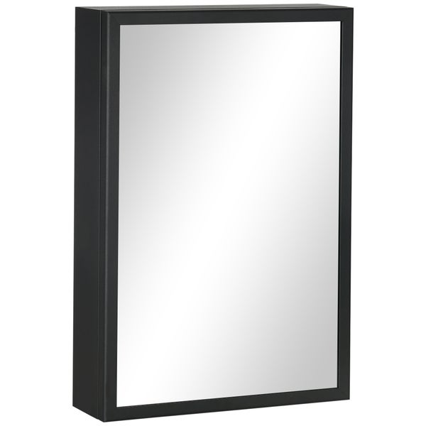 kleankin, Spiegelschrank, Badezimmerschrank, 40L x 12B x 60H cm, Edelstahl, Glas, Schwarz