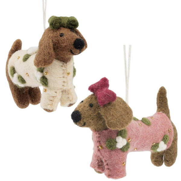 Kleine Schwestern Dackel Filz Weihnachtshänger - Sjaal met Verhaal