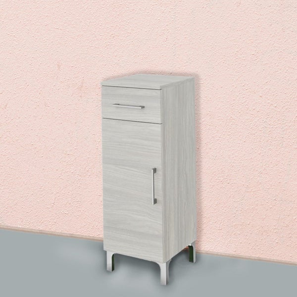 Dieser kleine Unterschrank der Serie Rimini ist eine platzsparende und elegante Lösung für das Badezimmer. Die Struktur besteht aus melaminharzbeschichteter Spanplatte mit 2 mm Abs-Kanten und ist in einer grauen Holzoptik. Ausgestattet mit einer Schublade, einer Tür, eine Glasablage, verstellbare Füße aus verchromtem ABS und verchromte ABS-Griffe eine edle Optik verleihen. Das Möbelstück ist bereits vormontiert.