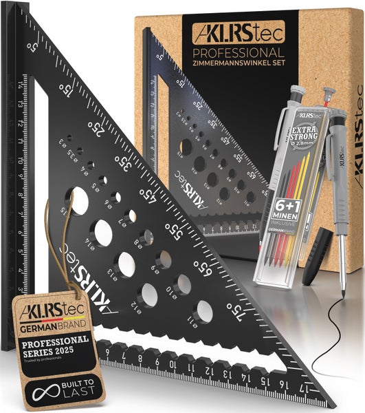 ✅ All-in-One Set – Winkelmesser, Zimmermannsbleistift, Anreisswinkel und viele Funktionen mehr. Mit dem KLRStec Professional Zimmermannswinkel Set wird jedes andere Messwerkzeug überflüssig