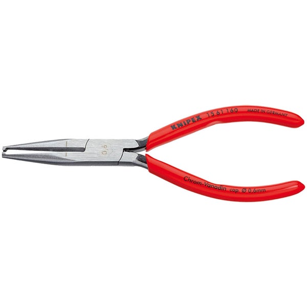 zum Abisolieren dünner Drähte auf einen Drahtdurchmesser abgestimmtes, präzises Abisolierprisma; nicht verstellbar mit Öffnungsfeder Chrom-Vanadin-Elektrostahl, geschmiedet, ölgehärtet Kopf poliert Griffe mit Kunststoff überzogen Merkmale Länge: 160 mm