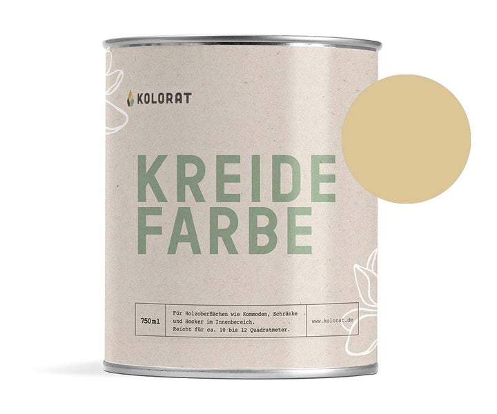Kolorat Kreidefarbe für Möbel - ein warmes Gelb mit einem leichten Goldton - Farbton Heublüte Nr. 128. Matter Kreidelack für innen - Möbellack, Möbelfarbe - Holzfarbe - Kreidefarbe für Holz