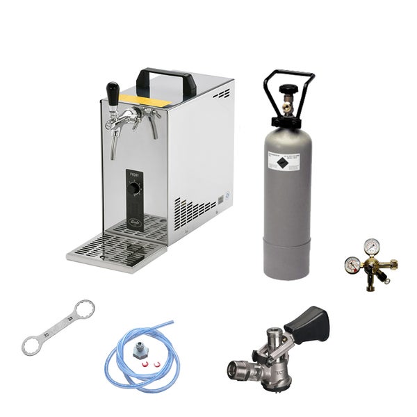Komplett Set - Zapfanlage, Bierzapfanlage, Bierkoffer, Durchlaufkühler PYGMY 25 1-leitig Trockenkühler, 35 Liter/h, KeyKeg