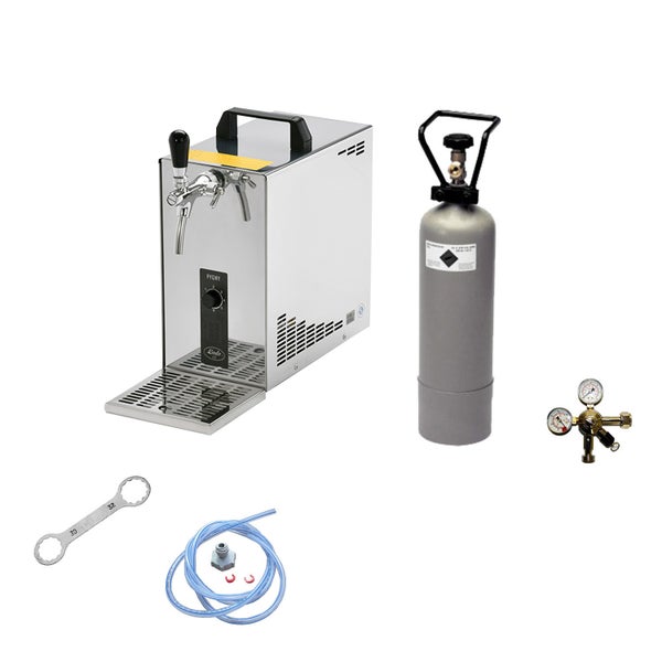 Komplett Set - Zapfanlage, Bierzapfanlage, Bierkoffer, Durchlaufkühler PYGMY 25 1-leitig Trockenkühler, 35 Liter/h