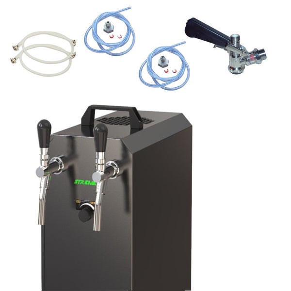 Komplett Set - Zapfanlage, Bierzapfanlage STREAM 50K mit Luftpumpe, 2-leitig, bis zu 55 Liter/h - BLACK EDITION, NC Adapter