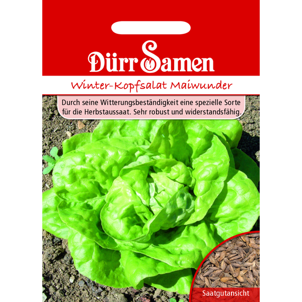 Info: Winter-Maiwunder ist durch seine Witterungsbeständigkeit ein spezieller Kopfsalat für die Herbstaussaat. Sehr robust und widerstandsfähig.