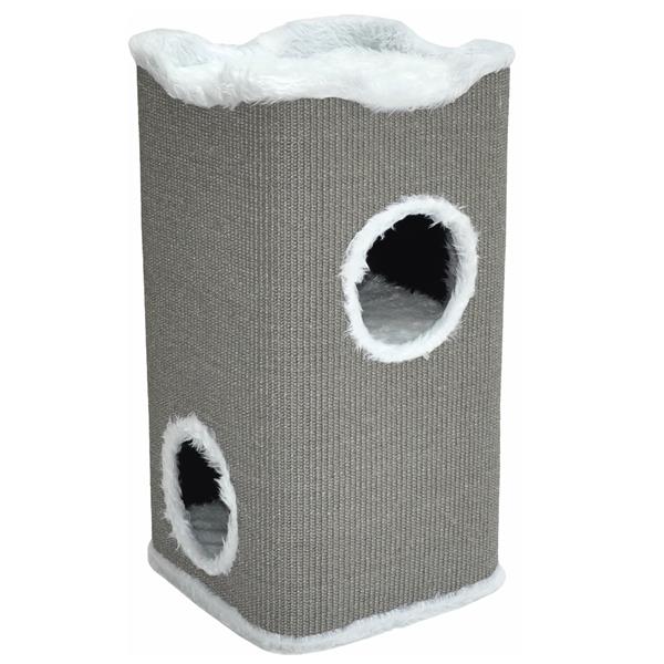 Äußerst robuste und stabile Kratztonne Toni mit rundum Sisalgeflecht für kratzfreudige Katzen. Mit 2 inneren Höhlen (ohne Durchlass) für gemütliche Stunden auf 2 Ebenen sowie weichem oberen Liegeplatz. 3 zusätzliche Kissen machen die Spieltonne zu einem tollen Spiel-, Kratz- und Ruheplatz. .Ein idealer Katzenturm auch für spielfreudige Katzen.
