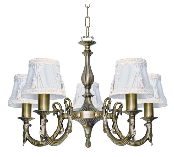 Kronleuchter mit Schirn Stoff Messing H: max. 95 cm in Bronze hell Weiß E14 Jugendstil Lüster Hängeleuchte