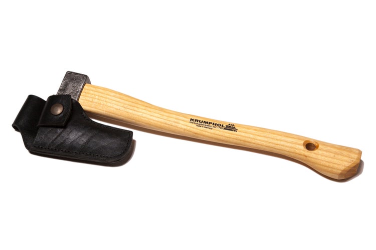 Krumpholz Gartenbeil mit USA-Hickorystiel, Lederschneidenschutz und Gürtelschnalle