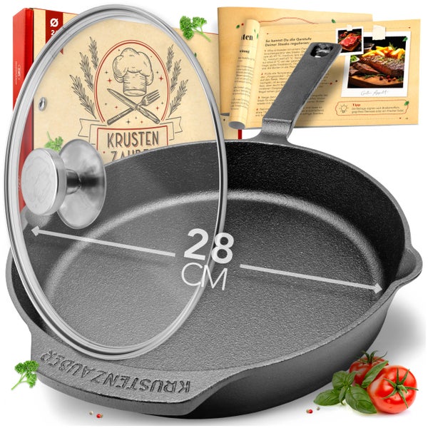 KRUSTENZAUBER 28cm Gusseisenpfanne Induktion Set - Voreingebrannte Gusseisen Pfanne - Ideale Grillpfanne Induktion, Eisenpfanne, Cast Iron Pan, Bratpfanne, Gusseiserne Pfanne Skillet Gusspfanne