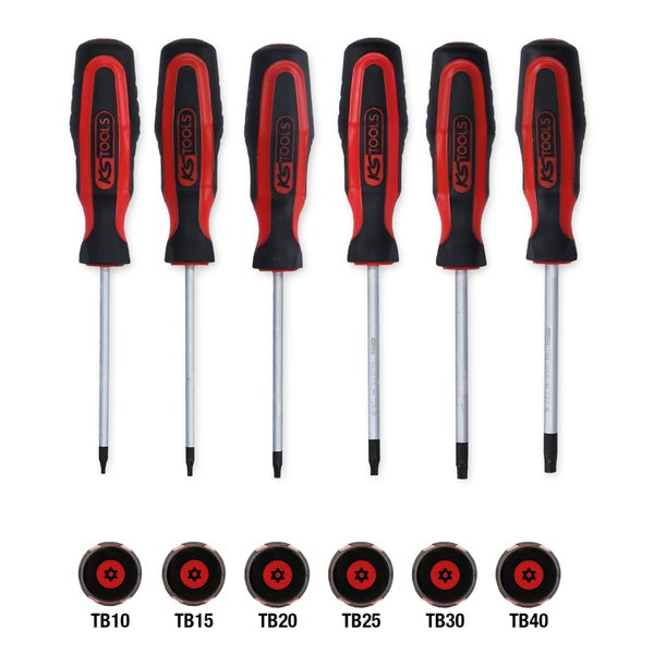 - Im Lieferumfang enthalten1x KS TOOLS ERGOTORQUEplus Schraubendreher-Satz 6tlg. Torx mit Bohrung