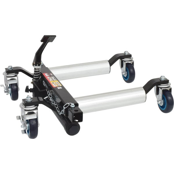universal einsetzbar auf Fahrer- und Beifahrerseite Lenkrollen ermöglichen das Rangieren von Fahrzeugen auf engstem Raum ideal zum Manövrieren von Fahrzeugen auf festem Untergrund leicht rollbar in jede Richtung zur platzsparenden Unterbringung von Fahrzeugen in Reparaturpausen ideal für Ausstellungsräume, Karosseriewerkstätten, Abschleppunternehmen etc. leichte Betätigung durch Fußpedal mit selbstschmierenden Kugellagern vier kugelgelagerte Vollgummi-Lenkrollen Auflagerollen aus Alu
