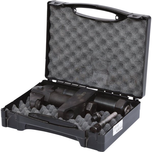 zum Lösen fest sitzender Klemmschrauben (M10) an 4-Lenkerachsen für rechte und linke Querlenker-Klemmschrauben für Alu- und Stahl-Vierlenkerachsen Lösekraft bis max. 12 t universal einsetzbare Hydraulikspindel (Aufnahmegewinde 1.1/2x16Gang) Feinjustierung für optimalen Wirkungsgrad in stabilem Kunststoffkoffer